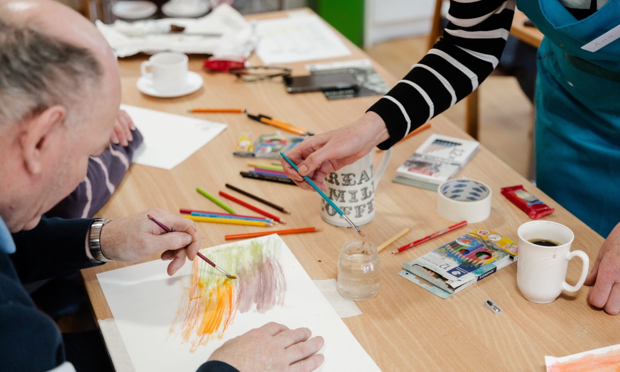 Open Studio is a weekly art workshop at the Réalta Centre for Arts + Health, which offers a creative and social outlet for people living in the community who may experience isolation due to ill-health or disability. Led by artist Jill Bouchier – and Ann Nolan in 2025 – with support from volunteer Sarah Lee, the workshop provides a relaxed, inclusive space where participants can develop their own art projects, connect with others and enjoy the benefits of cultivating a creative practice. Previous exhibitions by the Open Studio group include Separate Storms at University Hospital Waterford in 2011 and other Well Festival exhibitions including Cupán Tea (2013), The Feel Good Factory (2014), The Feel Good Factory II (2016), This is WHAT we’re all about (2018), Recollections (2020) and Gatherings (2023).